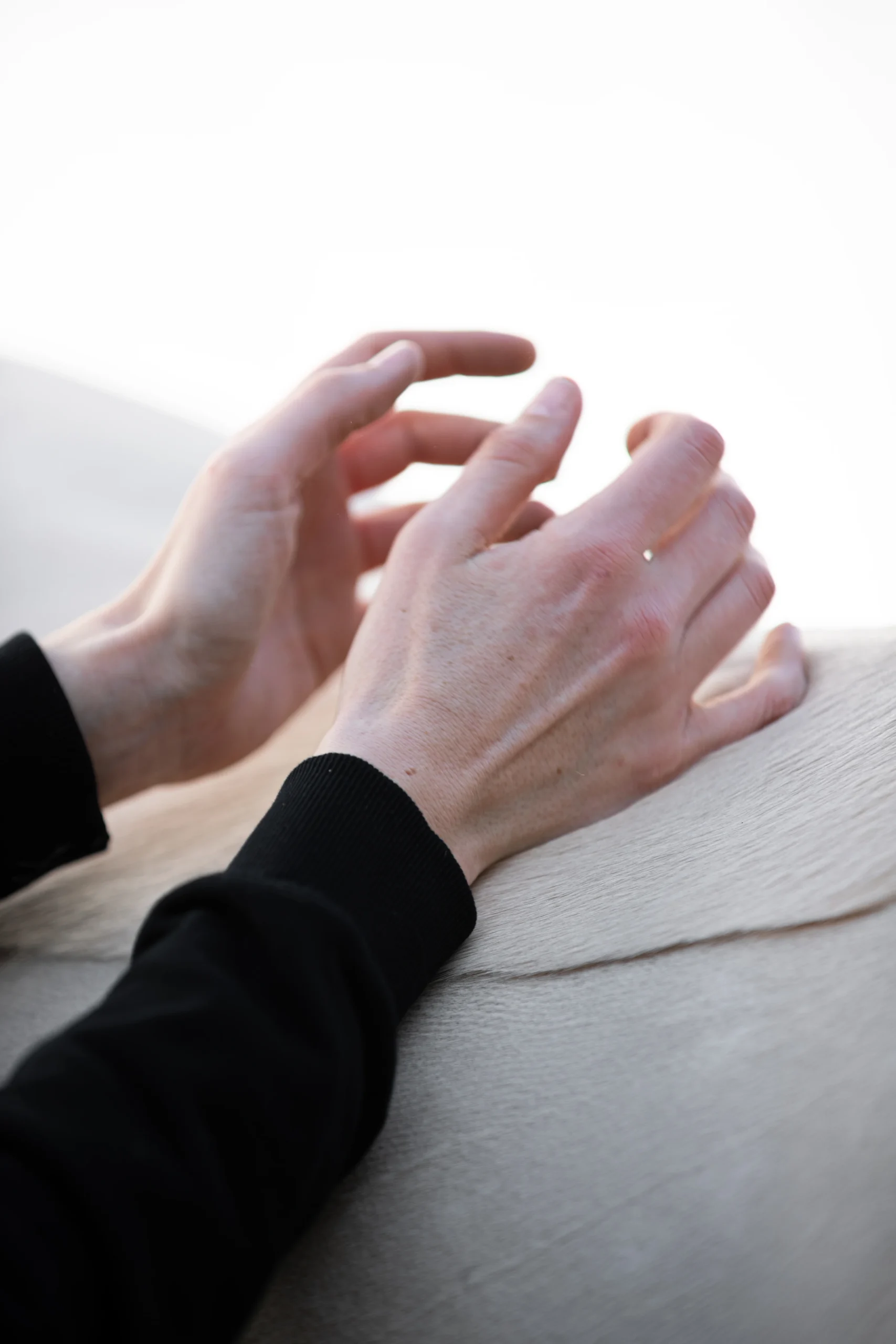 À travers mes mains, je détecte les variations de température, les zones de tension, les vibrations, les adhérences tissulaires et tout autre indice révélateur de l'état physique de l'animal.